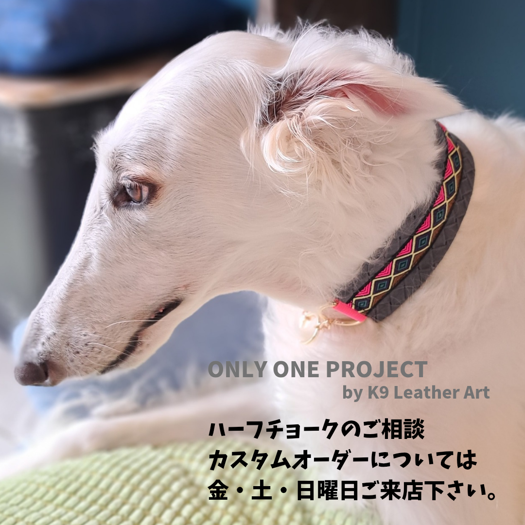 ハーフチョーク、首輪、リード、その他ハンドメイド革製品など、こだわり抜いた商品をご紹介